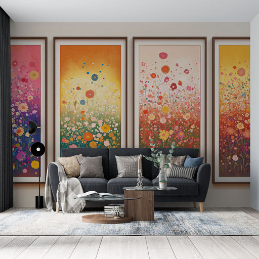 WonderMuralTapetul nostru exclusiv Mural prezintă un frumos câmp de flori colorate, cu o varietate de modele florale desenate în nuanțe vibrante. Florile, car...