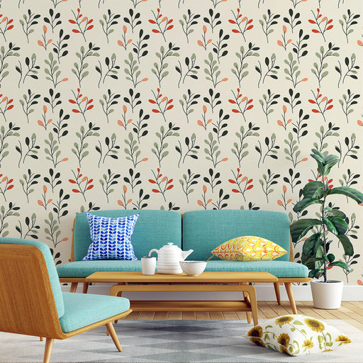 WonderMuralTapetul nostru mural exclusiv arată un model elegant de ramuri încrucișate, împodobit cu mici frunze verzi, creând o atmosferă naturală și liniștit...
