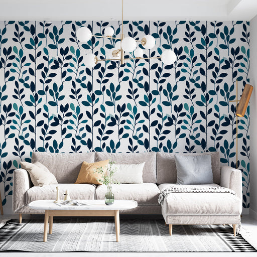 WonderMuralAceastă ilustrație de frunziș evocă o prospețime delicată cu frunzele sale în nuanțe variate de albastru, verde și câteva accente ușoare de galben....