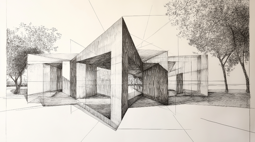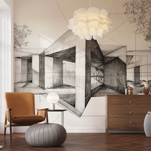 WonderMuralAcest captivant tapet mural evidențiază o ilustrație arhitecturală contemporană, cu forme geometrice îndrăznețe și linii de perspectivă impresionan...