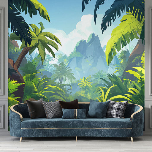 Vezi detalii completeTapet mural junglă | Un peisaj tropical luxuriant cu culori relaxante