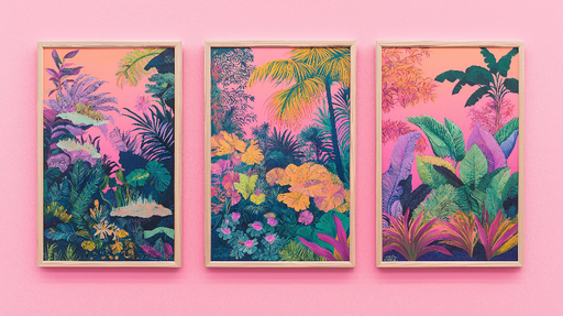 WonderMuralDescoperiți tapetul nostru inspirat din junglă, cu modele de vegetație luxuriantă într-o paletă de culori vibrantă, variind de la verde la roz apri...