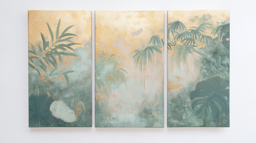 WonderMuralTapetul nostru prezintă un frumos model de plante tropicale în nuanțe de verde, iluminate de accente aurii care adaugă o eleganță sofisticată. Ames...