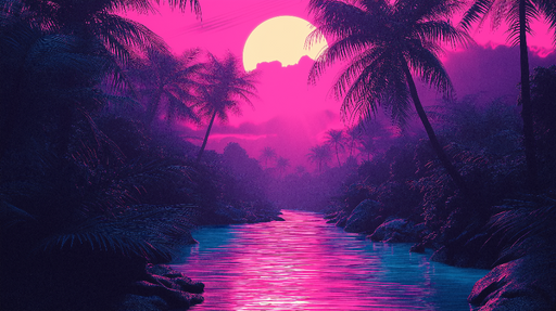 WonderMuralTapetul nostru mural evocă un peisaj tropical captivant în culori neon, unde un pârâu sclipitor serpuieste printr-o junglă luxuriantă. Nuanțele vib...