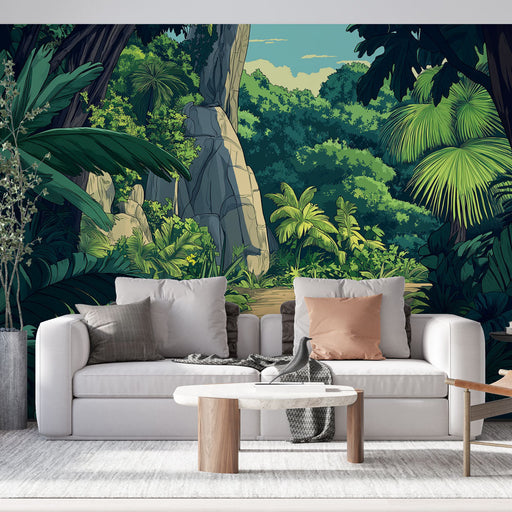 Vezi detalii completeTapet jungle | Un peisaj luxuriant cu vegetație abundentă și stânci
