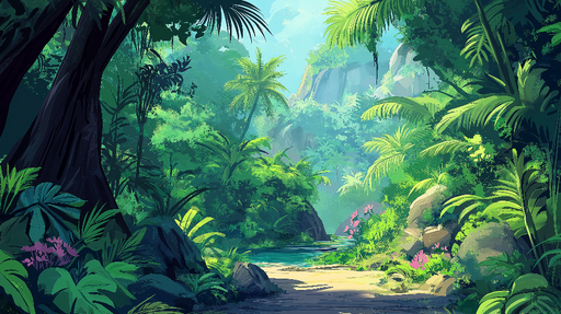Vezi detalii completeTapet peisaj junglă | Pădure tropicală luxuriantă și liniștită