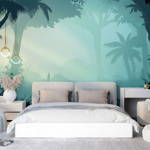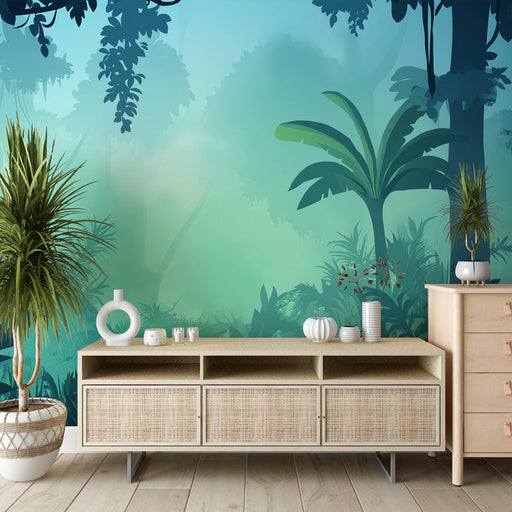 WonderMuralDescoperiți tapetul nostru inspirat de natură cu un peisaj de junglă cețoasă. Nuantele subtile de verde și albastru creează o atmosferă senină, und...