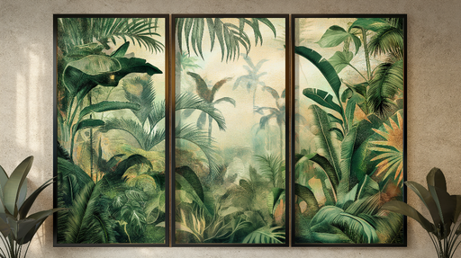 WonderMuralTapetul nostru mural original prezintă un set de patru panouri care înfățișează pasarele de lemn serpuind prin vegetația tropicală densă. Fiecare p...