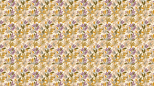 WonderMuralTapetul nostru exclusiv arată un model fermecător de frunze și flori în tonuri calde de galben, mov și verde, pe un fundal luminos. Armonia culoril...