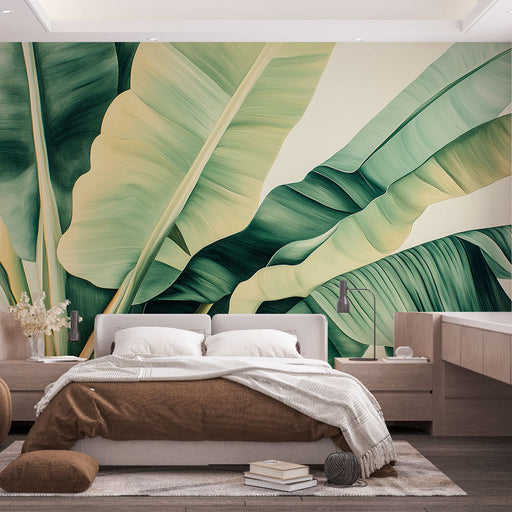 WonderMuralAceastă tapet magnific evidențiază un model de frunze mari de bananier în nuanțe strălucitoare de verde, creând o ambianță tropicală liniștitoare. ...