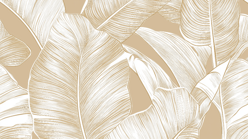 WonderMuralAceastă tapetă prezintă un model sofisticat de frunze tropicale mari, stilizate în alb pe un fundal bej moale. Detaliile fine ale nervurilor frunze...