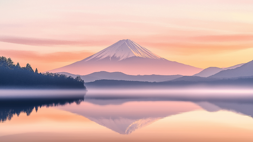 WonderMuralTapetul nostru prezintă o vedere spectaculoasă a unei munți, evidențiată de nuanțe moi de roz și portocaliu la răsărit. Reflecția liniștită a munte...