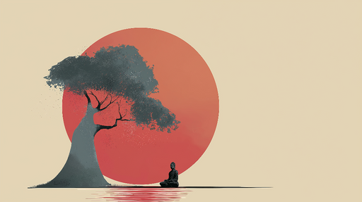 Vezi detalii completeTapet Mural zen | Buddha meditând sub un copac cu un soare roșu