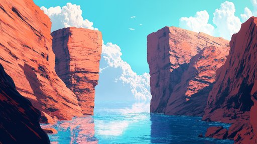 Acest mediu de vis ar fi ideal pentru proiecte de decorare interioară, ilustrații de aventură sau ca fundal pentru lucrări artistice inspirate de natură și explorări.