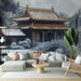 Tapetul nostru mural prezintă un pavilion asiatic tradițional frumos decorat, îmbrățișat de un strat ușor de zăpadă. Detaliile arhitecturale aurii ies în evidență într-un mediu liniștit, iluminate de un fulg de nea, creând o atmosferă zen și serenă.