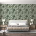 Tapet mural tropical | Model luxuriant de frunze verzi și albe