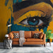 Această tapet captivant prezintă un ochi stilizat înconjurat de accente de galben și albastru, creând un contrast îndrăzneț care atrage atenția. Liniile abstracte și picăturile de vopsea adaugă o dimensiune texturată care îmbogățește orice cameră.