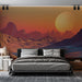 Descoperiți tapetul nostru elegant care ilustrează un peisaj extraterestru, unde munții cu contururi majestuoase se ridică sub un cer cu nuanțe calde de portocaliu și roz. Marea stea care iluminează scena creează un efect uimitor, transportând observatorul într-un univers îndepărtat și fascinant.