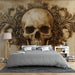 Intrați într-un univers baroc și îndrăzneț cu această tapetă care prezintă un craniu maiestuos, încadrat de volute florale intricate. Textura îmbătrânită și paleta de culori nisipoase aduc o notă de eleganță veche, în timp ce detaliile fin lucrate ale florilor și frunzelor adaugă o bogăție vizuală de neegalat.