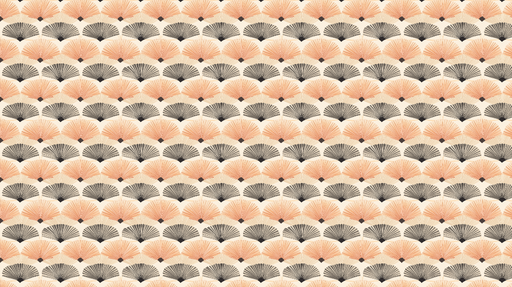 WonderMuralTa ozadje prikazuje rafiniran vzorec stiliziranih ventilatorjev, ki se izmenjujejo v nežnih odtenkih rožnate, bež in črne barve. Ponavljajoča se po...