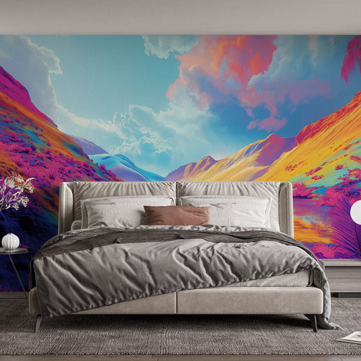 WonderMuralTa očarljiva tapeta vzbuja fantastično deželo, kjer se srečujejo svetle pokrajine in živahne barve. Iskreča reka, obkrožena s stiliziranimi gorami,...