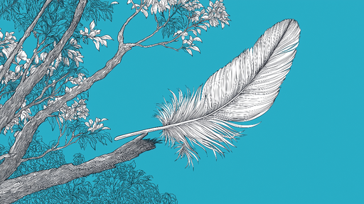 WonderMuralTa tapeta vzbudi popolno harmonijo med naravo in stilizirano umetnostjo, prikazuje belo pero, nežno narisano, ki počiva na veji, vse na ozadju bleš...