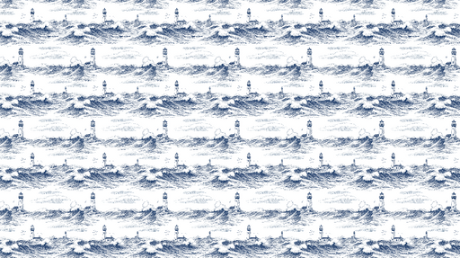 Ogled celotnih podrobnostiFototapet svetilnik in valovi | Vzorec v mornarsko modri barvi, ki prikazuje svetilnike na razburjenih valovih