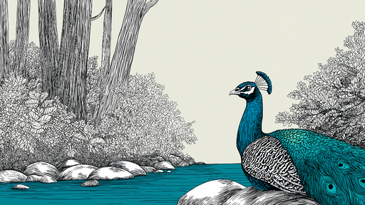 WonderMuralTa ozadje prikazuje lepega pavlina s turkiznimi peresi, skupaj z drobnimi detajli, ponosno stojijo ob mirnem potoku. Nevtralen ozadje poudari žive ...