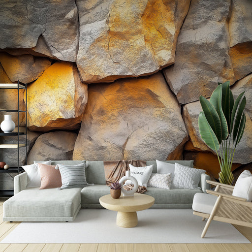Ogled celotnih podrobnostiFototapeta kamen | Realističen dizajn naravne skale s toplimi odtenki