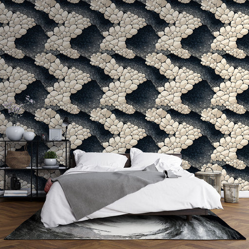 WonderMuralTa ozadje prikazuje čudovit kamniti vzorec, ki vzbudi naravno in pomirjujočo vzdušje. Svetlo obarvani kamni se izstopajo proti temnemu ozadju, ustv...