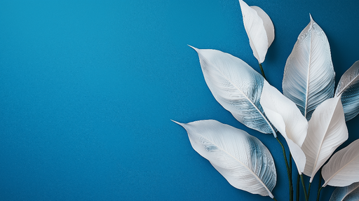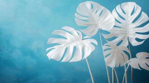 Ogled celotnih podrobnostiTapeta teal modra | Beli tropski listi na pomirjujočem ozadju