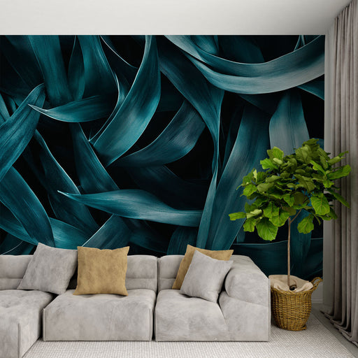 WonderMuralOdkrijte naše tapete, ki poudarjajo veličasten vzorec tropskih listov v odtenkih teal, kar ustvarja vzdušje, ki je hkrati pomirjujoče in dinamično....