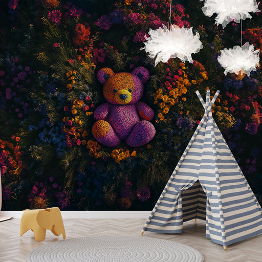 WonderMuralTa očarljiv muralni tapet značilnosti ljubek medvedek z topel nasmeh, popoln za ustvarjanje vzdušja nežnosti in udobja v otroški sobi. Mehke barve ...