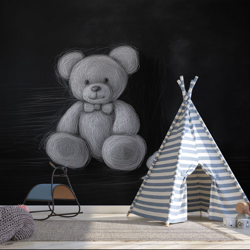 WonderMuralOdkrijte našo ljubko ilustracijo medvedka, skrbno narisano, da ujame nedolžnost in nežnost otroških igrač. Postavljen proti črnemu ozadju, ta medve...