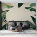 Ta stenska tapeta vzbuja tropsko vzdušje zahvaljujoč svojemu veličastnemu vzorcu bananinih listov v zelenih in bež odtenkih. Listi, narisani s posebno skrbjo, se graciozno razprostirajo na svetlem ozadju, ustvarjajoč vzdušje, ki je hkrati sveže in prijetno.