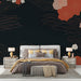 Mural Wallpaper cvetlični | Cvetlični vzorec z valovi na črnem ozadju