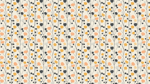 WonderMuralTa tapeta prikazuje očarljiv vzorec nežno narisanih oranžnih cvetov na pomirjujočem kremnem ozadju. Majhni cvetovi, spremljajoči elegantni stebli, ...