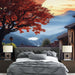 Poglobite se v toplo vzdušje jeseni z našim jesenskim pokrajinskim muralnim ozadjem. Ta slikovita prizorišča zajema lepoto tihe ulice obložene z hišami in mogočnim drevesom z rdečimi listi pod spektakularnim sončnim zahodom. To muralno ozadje je popolno za ljubitelje očarljivih pokrajin in bo dodalo pridih sproščenosti vašemu notranjemu dekorju.