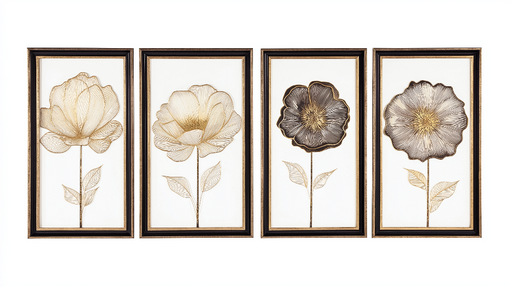 WonderMuralTa ozadje je razlikovana s prefinjenim vzorcem zlatih cvetov, predstavljenih v obliki slik. Vsak od štirih cvetov je skrbno narisanih, poudarjajoč ...