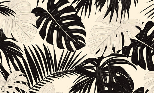 Tapeta črno-belo listje | Drzen tropski vzorec