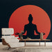 Globina in umirjenost določata to foto behang, navdihnjen z meditacijo, z žensko silhueto v položaju lotosa, izrezano na svetlo rdečem ozadju, ki simbolizira sonce. Minimalistična a vendar močna ilustracija uporablja kontrastne barve, da ustvari vzdušje miru in koncentracije.