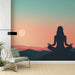 Odkrijte sprostitev tapete 'Meditativni Silhueta', ki zajema mirnost silhuete meditacije pred gorskim pejsažem ob zori. Barve se razprostirajo v harmoničnem prelivu modre, rožnate in oranžne, ki vzbujajo prve žarke dneva. Preprostost in ravnotežje te ilustracije prinašata občutek miru in sprostitve, idealno za ustvarjanje sproščujoče atmosfere.