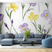 Ta tapeta osvetljuje čudovit vzorec barvitih cvetov, vključno s škrlatnimi vijolicami in živahnimi rumenimi cvetovi, usklajeno razporejenimi na svetlo beli podlagi. Odttenki vijolične in rumene prinašajo pridih svežine in veselja, kar ta dizajn naredi za idealno izbiro za osvežitev vsake sobe.