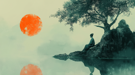 WonderMuralPričaranje mirne scene meditacije pod velikim drevesom, ta tapeta zajame mirno vzdušje z ilustracijo osebe, ki sedi na skali in občuduje tišino sij...