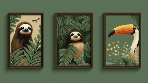WonderMuralTa fototapeta ponuja očarljiv triptih, ki prikazuje pisane tukane obdane z bujno tropsko vegetacijo. Bogati in nežni toni ptic, združeni z nežnimi ...