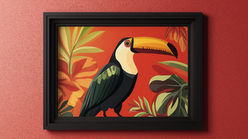WonderMuralNaša tapeta ima elegantnega tukana, ki prikazuje živahne barve in sodoben dizajn na svetlo rdečem ozadju. Ta očarljiv vzorec je obdan z bujnimi lis...