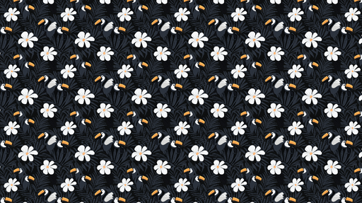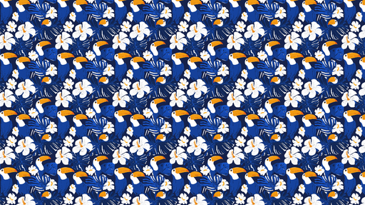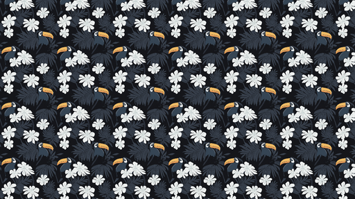WonderMuralTa fototapeta zajame bistvo tropskih krajev z živahnim vzorcem tukani in belih cvetov na temno modrem ozadju. Podrobnosti listov in živali se izris...