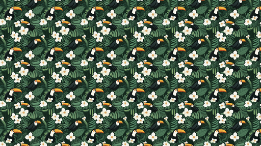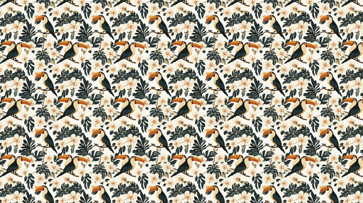 WonderMuralPotopite se v tropsko vzdušje z našim tapetom s tukanom, ki prikazuje živahen vzorec barvnih tukanov, obkroženih z eksotičnimi cvetovi in bujnim li...