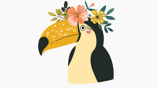 WonderMuralTa ta foto behang prikazuje očarljivega tukana okrašenega z nežnimi pomladnimi cvetovi, narisanimi z nežnimi in pomirjujočimi barvami. Ilustracija ...
