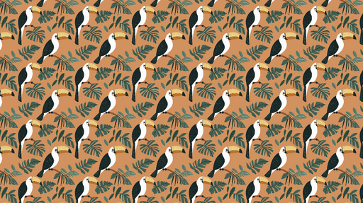 WonderMuralNaša prekrasna fototapeta prikazuje igriv vzorec tukanojev v živahnih barvah, obdanih z bujnimi tropskimi listi, vse na toplem oker ozadju. Vsak de...